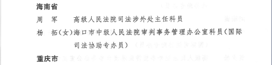 在6月6日举行的第三次全国法院外事工作会议上,最高法院对外事工作先进集体和先进个人进行了表彰。海口中院国际司法协助专办员杨拓荣获“全国法院国际交流合作工作先进个人”称号。