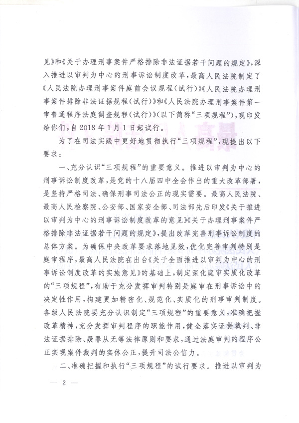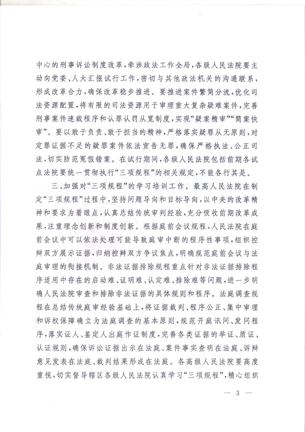 最高人民法院关于人民法院办理刑事案件“三项规程”