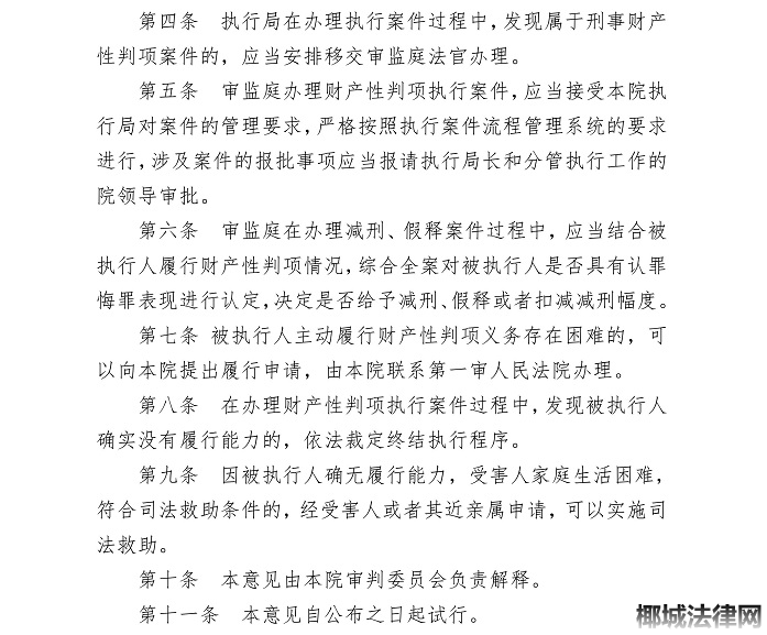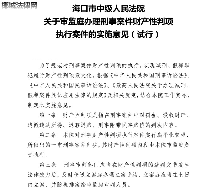 《关于审监庭办理刑事案件财产性判项执行案件的实施意见(试行)》