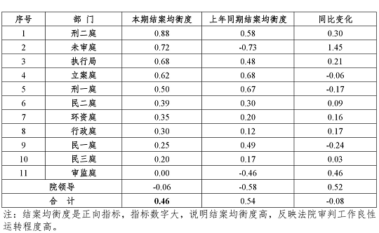 2018年1-4月海口中院各业务部门结案均衡度情况